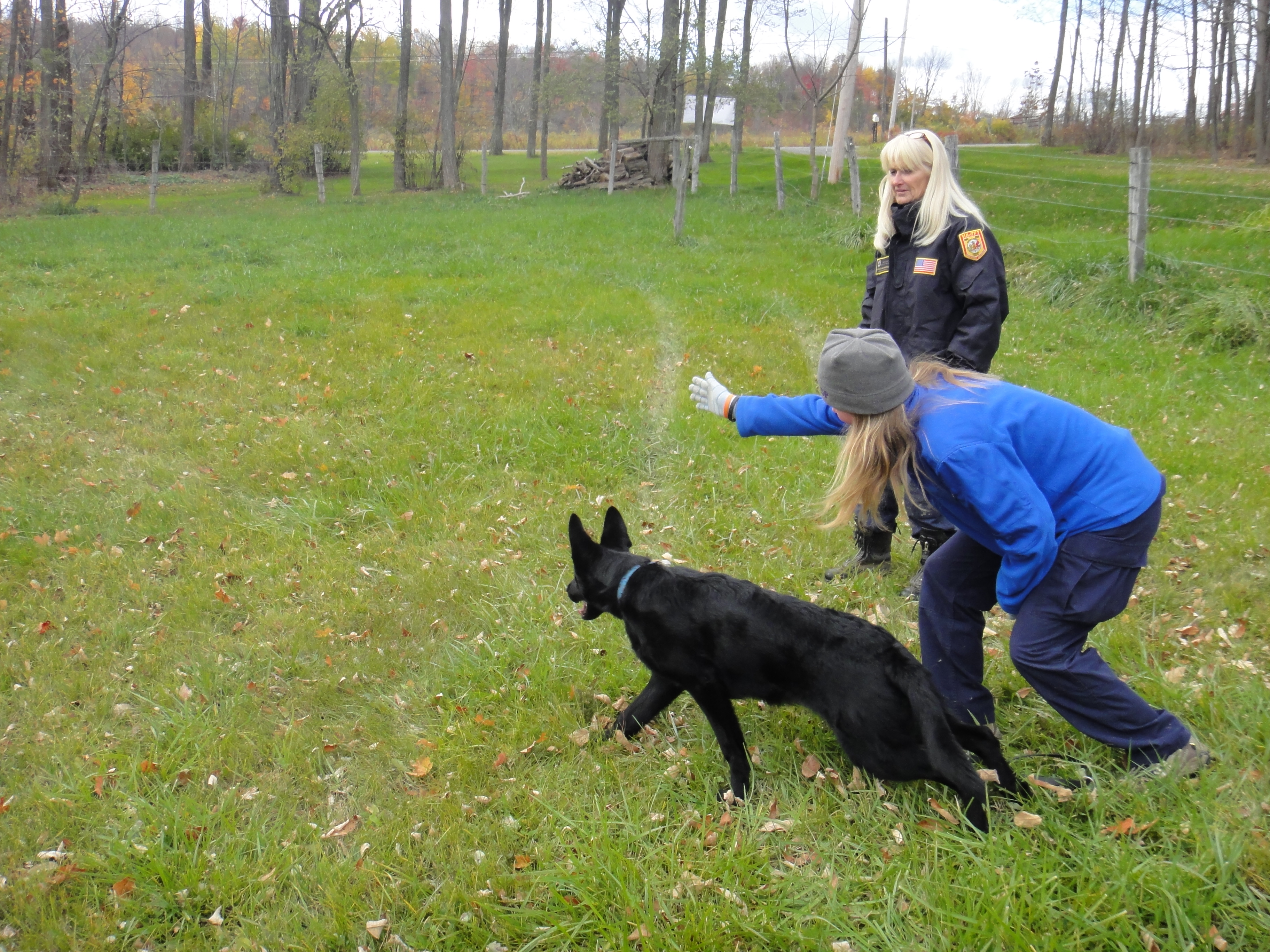 The weekend of October 24th Amigo SAR dogs hosted a disaster seminar in Warren Center PA with FEMA K9 handler and instructor Theresa MacPherson. It was a wonderful introduction to a rubble pile and bark barrel which Eme had never been trained on! She learned to do a bark and hold at a subject and we still worked her refind in wilderness and got some great ones in!