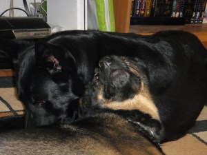 Fugly and Val relaxing at work.