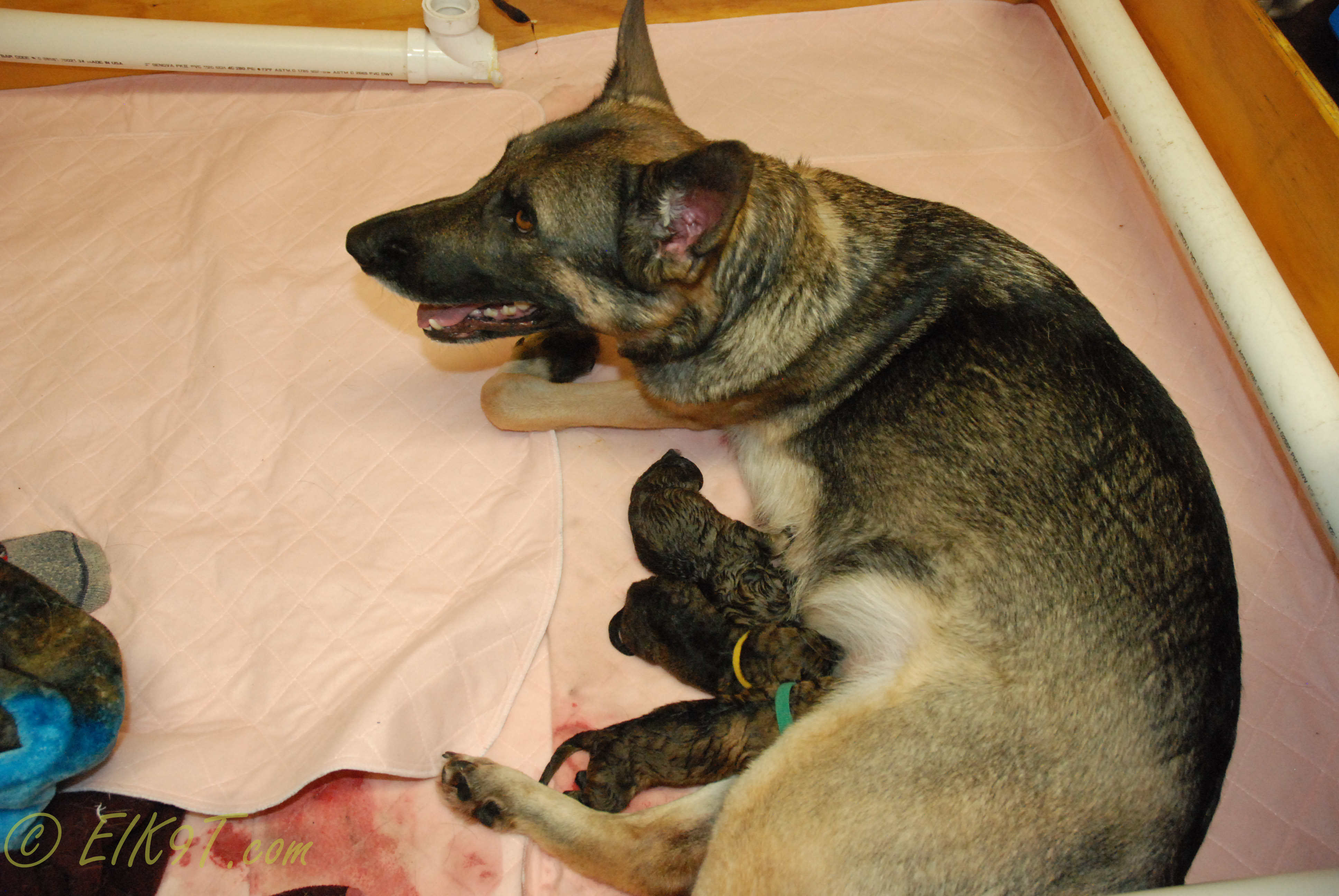 Welcome “A” litter vom Kugelblitz Posted on April 13, 2014 by Canine Co-Pilot Starting at 9pm April 3rd Raina went into labor, and our first puppy yellow girl arrived at approx 11:30pm. For the next 4 hours Raina was amazing, and gave birth to 7 happy live babies, 4 girls and 3 boys. Please enjoy a few pictures below. Share this: Click to share on X (Opens in new window) X Click to share on Facebook (Opens in new window) Facebook Like Loading... Related